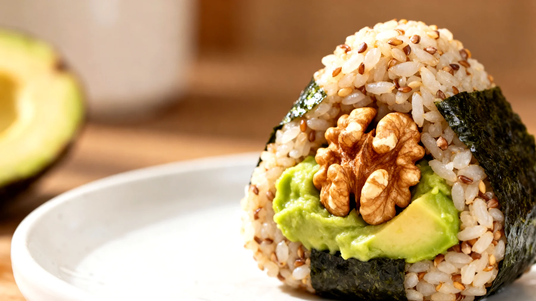 Die Kombination aus Walnüssen und Avocado in diesen Onigiri ist kein Zufall. Walnüsse liefern Alpha-Linolensäure, eine pflanzliche Omega-3-Fettsäure, die entzündungshemmend wirkt und die Hirndurchblutung verbessert. Regelmäßiger Walnussverzehr wird mit besserer kognitiver Funktion in Verbindung gebracht, besonders bei Aufgaben, die Verarbeitungsgeschwindigkeit erfordern.