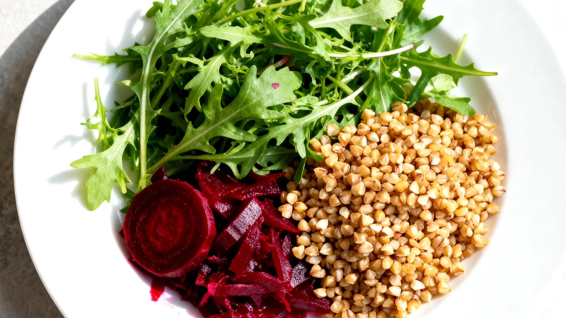 Die Kombination aus probiotischen fermentierten Rüben, vitaminreichem Mizuna und proteinhaltigem Buchweizen ergibt ein ernährungsphysiologisch ausgewogenes Gericht. Der hohe Ballaststoffgehalt aller drei Komponenten fördert die Verdauung, ohne den Darm zu überfordern. Magnesium aus dem Buchweizen kann entspannend auf die Muskulatur wirken – ideal nach einem angespannten Arbeitstag.