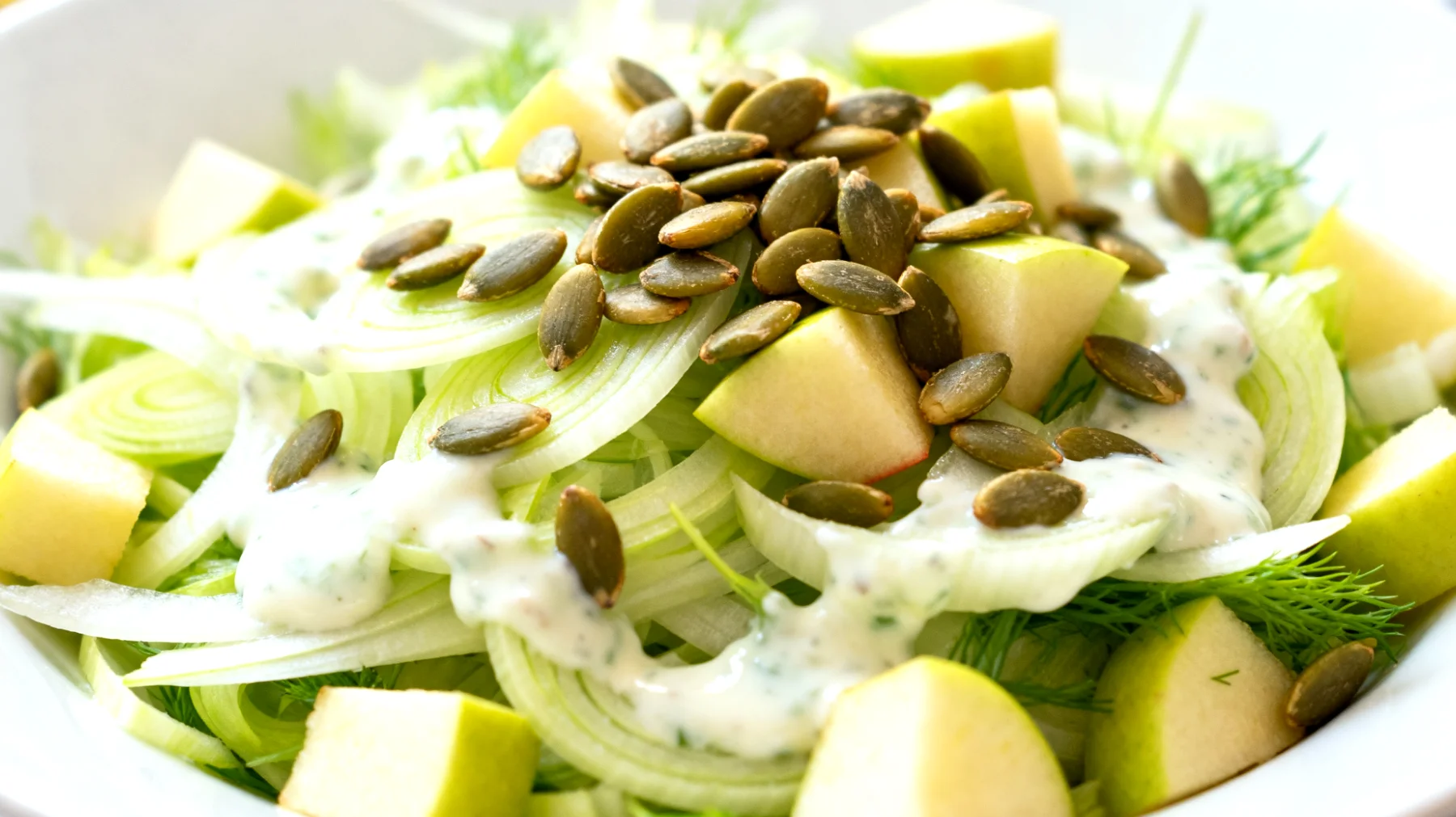 Wer kennt es nicht: Man freut sich aufs Training, doch kaum hat man etwas gegessen, meldet sich der Magen mit unangenehmen Blähungen oder einem Völlegefühl. Gerade sportlich aktive Menschen stehen oft vor der Herausforderung, ihren Körper ausreichend mit Nährstoffen zu versorgen, ohne dabei die Verdauung zu belasten. Ein Fenchel-Apfel-Salat mit gerösteten Kürbiskernen und Kefir-Dressing bietet hier eine clevere Lösung, die Genuss und Funktion perfekt vereint.